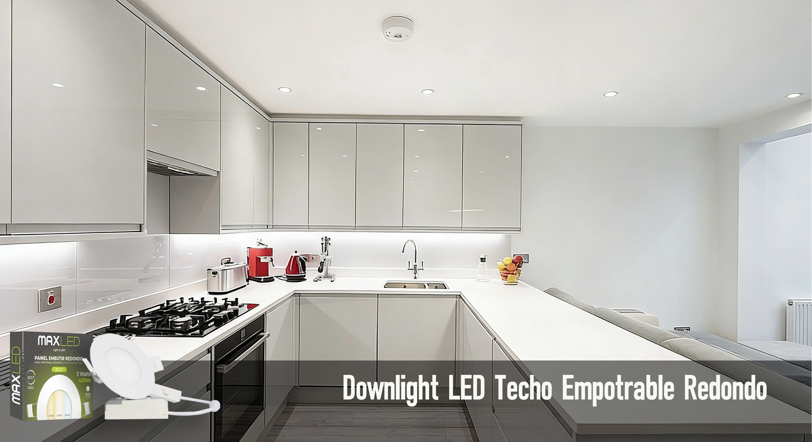 Its small size makes it ideal for installation in specific areas of the kitchen: above the countertop, the sink, or the food preparation area. The adjustable color temperature allows you to adapt the lighting to each task: cool light (6000K) for clear cooking, highlighting the colors of the ingredients; neutral light (4000K) for social moments; and warm light (3000K) for casual dinners in the kitchen. Its super-slim, round design blends seamlessly with the decor of modern or traditional kitchens, whether featuring tiles, wood, or minimalist finishes.