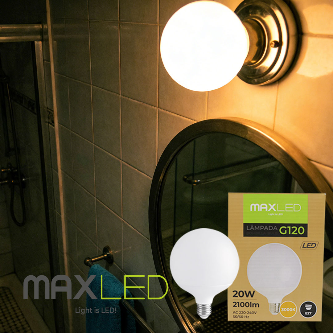 Mit der Maxled, Light is Led! G120 E27 LED Lampe holen Sie sich eine leistungsstarke und energiesparende Alternative zu herkömmlichen Glühlampen und Halogenleuchten in Ihr Zuhause. Mit 20 Watt Leistung erzielt die Lampe eine Helligkeit von 2100 Lumen und ersetzt damit problemlos eine 160 Watt Halogenlampe – bei deutlich geringerem Energieverbrauch.
