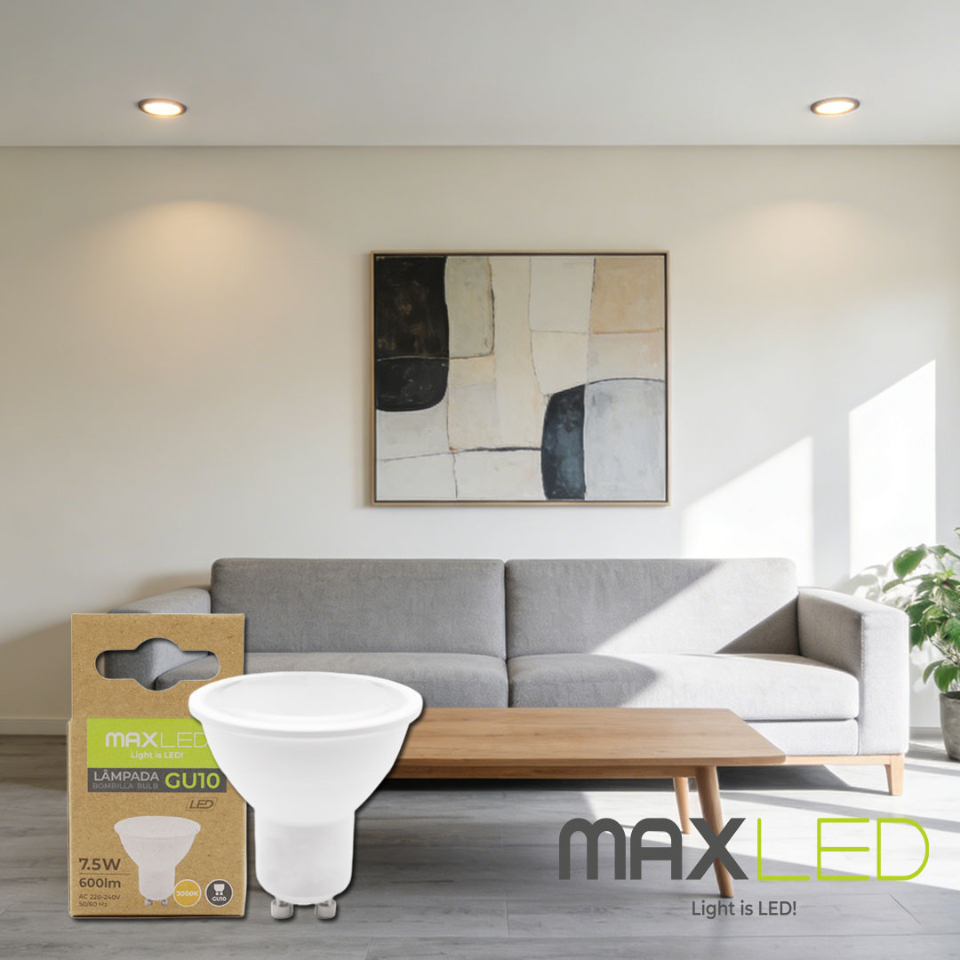 Maxled, Light is Led! Mit den neuen GU10 LED Lampen von Maxled, Light is Led! holen Sie sich modernste Beleuchtungstechnik in Ihr Zuhause – ohne Kompromisse bei Lichtqualität, Komfort oder Energieeffizienz. Die 7,5W Leuchtmittel ersetzen mühelos herkömmliche 55W Halogenlampen und vereinen Sparsamkeit mit warmer, natürlicher Beleuchtung für Wohnraum, Küche und Essbereich.